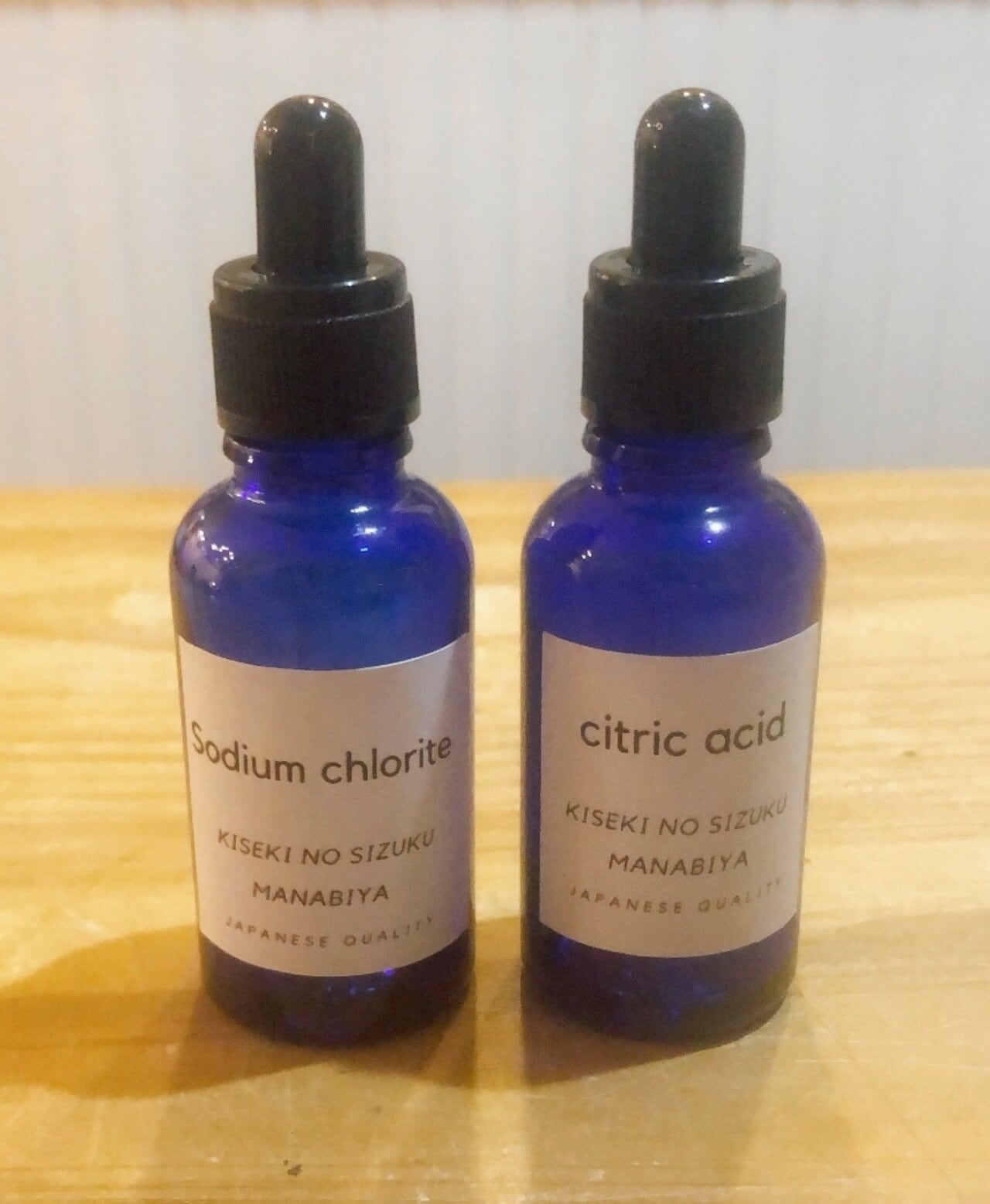 二液のナトリウム液とクエン酸を一滴ずつカップなどで混合させて30秒ほど待ちます